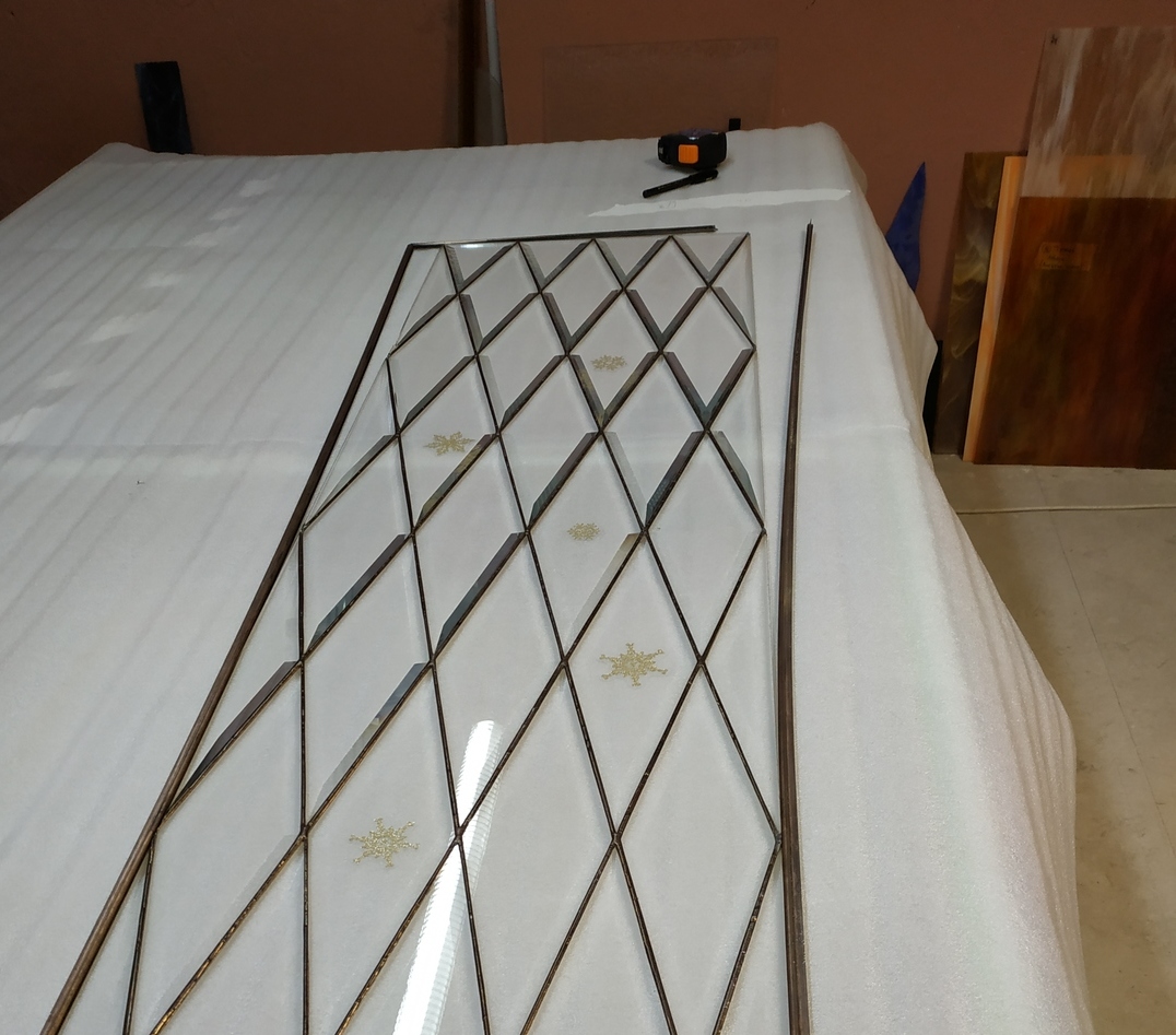 Реставрация витража тиффани установленного в раздвижные двери